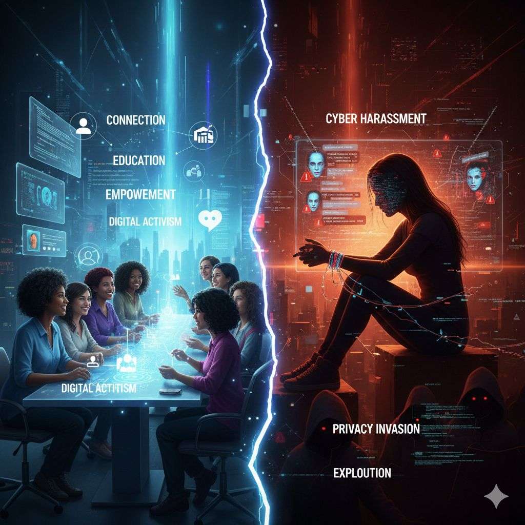 النسوية السيبرانية: التمكين والتهديدات في العالم الرقمي ( AI Generated – Gemini)