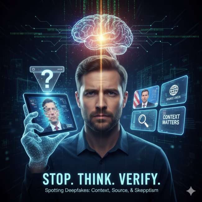 يوضح الهندس خالد أن التمييز بين الحقيقي والمزيف أصبح أصعب من أي وقت مضى، لكن ما زال ممكناً إذا تغيّرت طريقة تعاملنا مع المحتوى. أول خطوة أساسية هي التوقف قبل التصديق. في عصر الديب فيك، السرعة هي العدو الأكبر للحقيقة. أي فيديو صادم أو عاطفي يحتاج إلى لحظة شك، لا إلى مشاركة فورية.