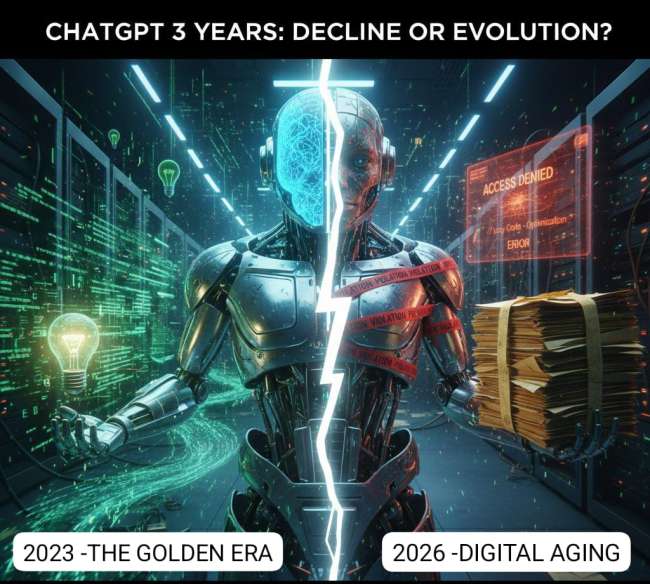 في تشرين الثاني 2022، لم يكن إطلاق ChatGPT مجرد حدث تقني بل كان “زلزالا معرفيا” أعاد تعريف علاقتنا بالذكاء الاصطناعي التوليدي. واليوم، وبعد مرور ثلاث سنوات (2023-2026) نجد أنفسنا في مرحلة ما بعد الانبهار لم يعد المستخدمون يسألون: “ماذا يمكنه أن يفعل؟”، بل أصبح السؤال الملحّ: “لماذا لم يعد يفعل ذلك بذات الجودة؟”.